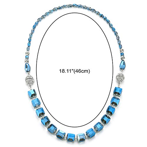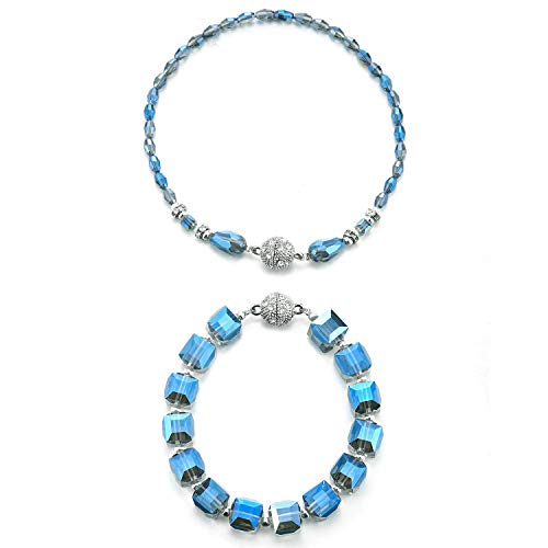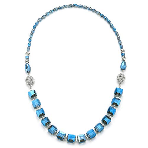 COOLSTEELANDBEYOND Statement Collana con Blu Arcobaleno Cube Navette Cristallo Perline Strass Chiusura Magnetica Staccabile Bracciale