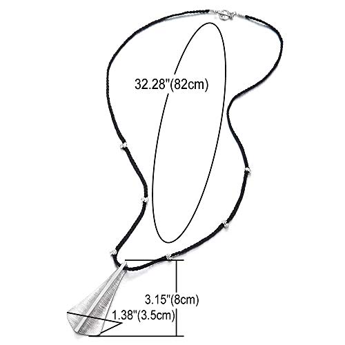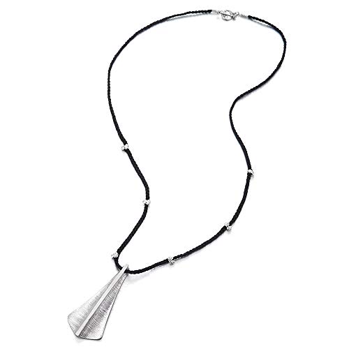 COOLSTEELANDBEYOND alla Moda Statement Collana Foglia Pendente con Irregolare Perlina, Lunga Intrecciato Cotone Corda, Festa Evento