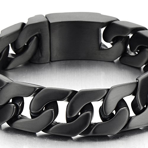 COOLSTEELANDBEYOND Stile Maschile, Nero Barbozzale Braccialetto, Bracciale da Uomo, Acciaio Inossidabile, Satinato
