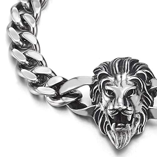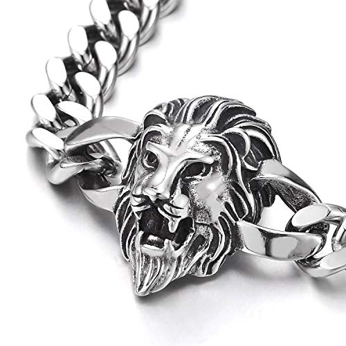 COOLSTEELANDBEYOND Testa di Leone Braccialetto, Bracciale da Uomo, Acciaio, Barbozzale, Lucidato a Specchio, Gotico, Rock Punk