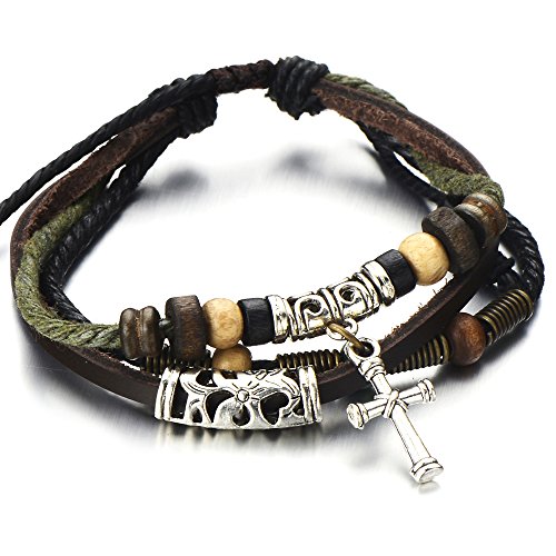 COOLSTEELANDBEYOND Tribale Croce, Multi-Filo, Marrone, Uomo Braccialetto di Cuoio, Cuoio Fascia di Polso, Pelle Bracciali Avvolgere