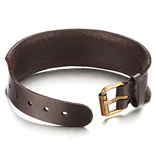 COOLSTEELANDBEYOND Unico, Uomo Donna Ragazzi Braccialetto di Marrone Cuoio, Bracciale Vera Pelle, Fascia di Polso