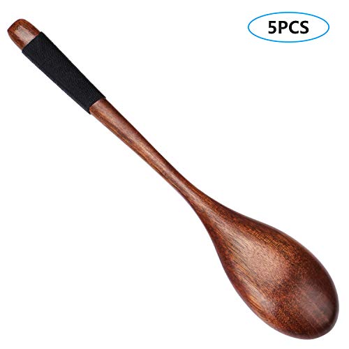 Coolty 5pcs Cucchiaio di Zuppa in Legno, Cucchiaio di Riso Coreano Giapponese con Manico Lungo, Utensili da Cucina Agitatore di Miscelazione Cottura Zuppa