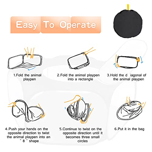 Leggero e portatile: il box pieghevole pesa solo 300 g. La larghezza e l'altezza espanse sono 100 cm * 38 cm. Facile da installare, conservare e trasportare. Può fornire ai piccoli animali comfort, spaziosità e sicurezza all'interno della casa, puoi anche mettere la gabbia all'aperto per prendere il sole con il tuo animale domestico.