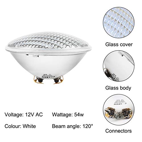 Illuminazione per piscina impermeabile a bassa tensione: l'illuminazione a LED da 54 W richiede un design di ingresso CA 12 V a bassa tensione, garantisce un ambiente sicuro per la piscina. (Trasformatore elettronico per 12 V, non è incluso nella confezione)