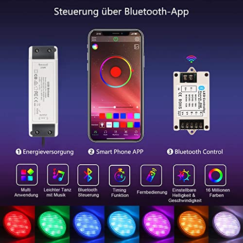 COOLWEST Luci per piscina a LED, luce per piscina DC12V 40W RGB, 2000LM, 4,5 pollici, controllo esterno, IP68 impermeabile, luce per piscina subacquea con cambio colore (controllo APP Bluetooth)