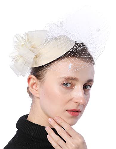Cappello vintage in stile britannico Kate Middleton, cappello derby del Kentucky, velo affascinante con base in rete a rete a disco flapper per le donne. Ottimo regalo per te o i tuoi amici e ottimo per feste, matrimoni, Natale, Capodanno, Derby e Pasqua.