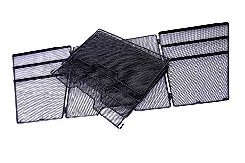 CoolYeah - Organizzatore per scrivania in rete di metallo nero, scomparti separabili, per fogli in formato A4 e qualsiasi documento