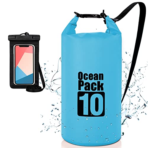Coolzon Borsa Impermeabile-Sacca Impermeabile con Custodia Impermeabile per Cellulare, Sacca Stagna con Tracolla Regolabile per Kayak Rafting Canottaggio Campeggio Viaggiare Nuoto, 10L Blu