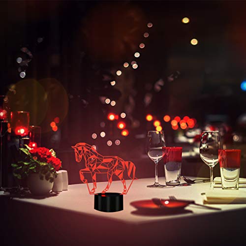 Coolzon Lampada 3D Illusione Ottica Luce Notturna Bambini, Lampade 3D LED Luce Notte 7 Colori Cambiano Deco Lampada da Comodino Tattile Lampada Cavallo con Cavo USB