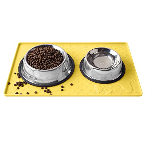 Coomazy Tappetino per alimenti per gatti e cani M/L, bordi rialzati di 1 cm, antiscivolo, tappetino per alimenti per gatti