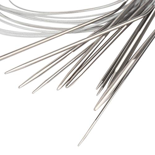 [FERRI DA MAGLIA CIRCOLARI DI ALTA QUALITÀ] - Realizzati in acciaio inossidabile. Dopo molte operazioni di levigatura e lucidatura con la macchina, l'ago diventa liscio, caldo al tatto e comodo da impugnare. I cavi sono realizzati in materiale di nylon di alta qualità, morbido e flessibile, ma sufficiente per supportare il tuo progetto di lavoro a maglia.