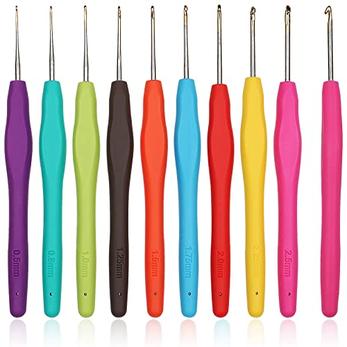 ❤️SET DI UNCINETTO IN ACCIAIO DI QUALITÀ CON MANICO COLORATO: questi sono ganci in acciaio pensati per il filato all'uncinetto, il che significa che sono piccoli. Poiché le maniglie sono realizzate in una varietà di colori brillanti e luminosi, sembrano molto dinamiche e creative.