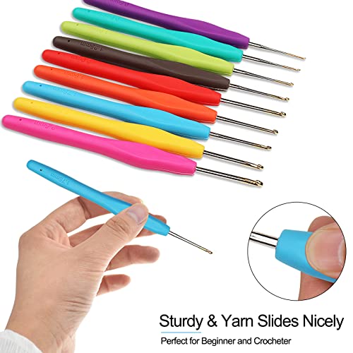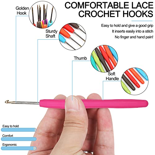 ❤️SET DI UNCINETTO A ERGONOMICO: rispetto ai ganci standard in acciaio interamente in metallo, questo uncinetto in pizzo è ergonomico, il manico solido è resistente e il materiale TPR è morbido e confortevole. Non devi stringere così forte per causare crampi. E offre risultati sorprendentemente confortevoli nel prodotto da cucire e senza affaticare la mano.