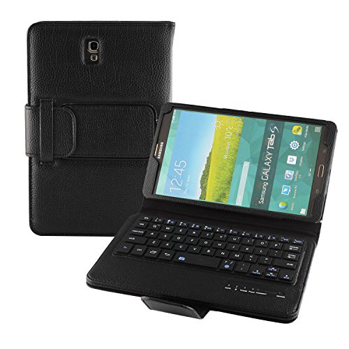 Cooper Cases(TM) CEO - Custodia a Libro con Tastiera per Samsung Galaxy Tab S 8.4 T700/T705 in Nero (Tastiera QWERTY Inglese Americano Amovibile, Magnetica, Tasti Funzione Dedicati, Pulsante di Rilascio dell'Otturatore della Fotocamera con Controllo Remoto, Supporto Display Integrato)
