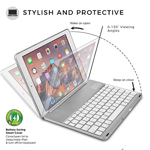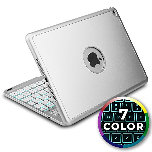 Cooper Cases Notekee F8S Custodia con tastiera Bluetooth retroilluminata per iPad Air 2, retroilluminazione in 7 colori, batteria che dura 60 ore, tasti di scelta rapida, modalità sleep/wake (argento)