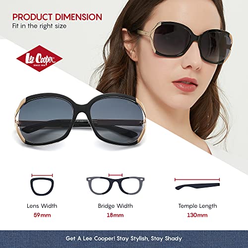 Lee Cooper Occhiali da sole polarizzati da donna con protezione UV - Occhiali moda per stile casual, Montatura - Nero | Lenti - Gradiente Grigio, Taglia unica