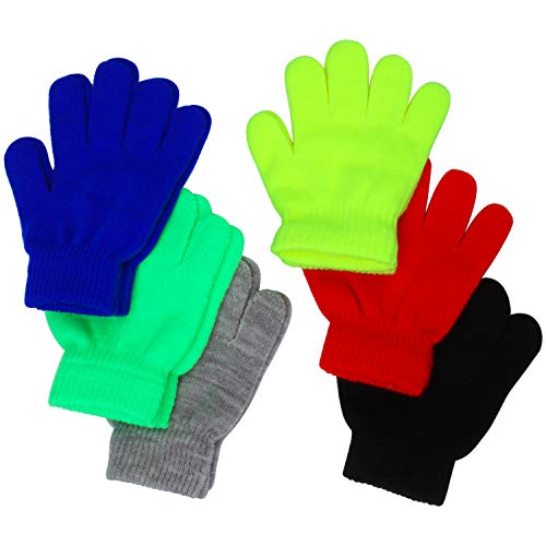 Cooraby - 6 paia di guanti magici per bambini, in maglia, per adolescenti, caldi e invernali, elasticizzati, con dita intere Multicolore 1 4-6 Anni