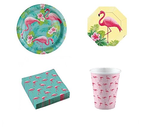 Coordinato kit compleanno tema fenicottero rosa per 24 persone party feste