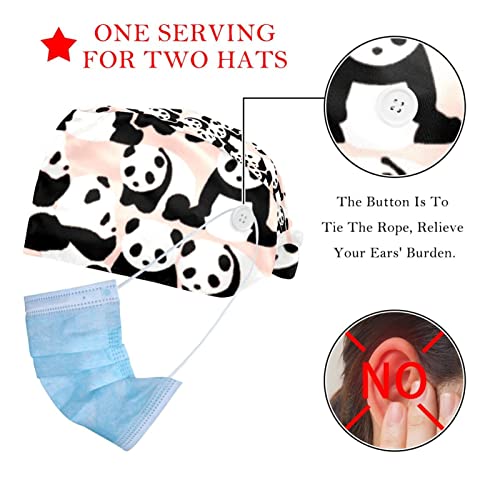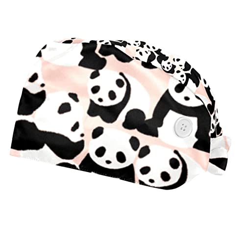 Coosun 2 pezzi berretto da lavoro con bottoni e fascia antisudore cravatta indietro cappelli Bouffant Caps Panda scrub turbante cappello, Multicolore, Etichettalia unica