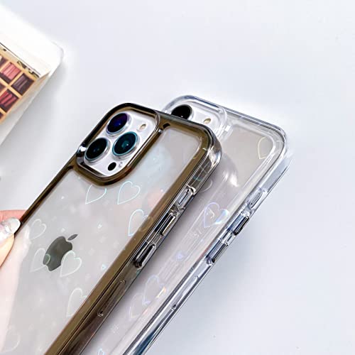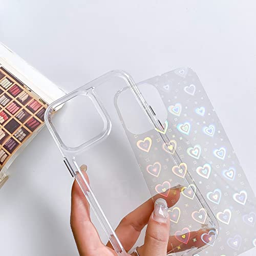 Custodia olografica per telefono a cuore: custodia per telefono con motivo a cuore glitterato con carta riflettente laser, mostra il cuore lucido di diversi colori da diverse angolazioni.