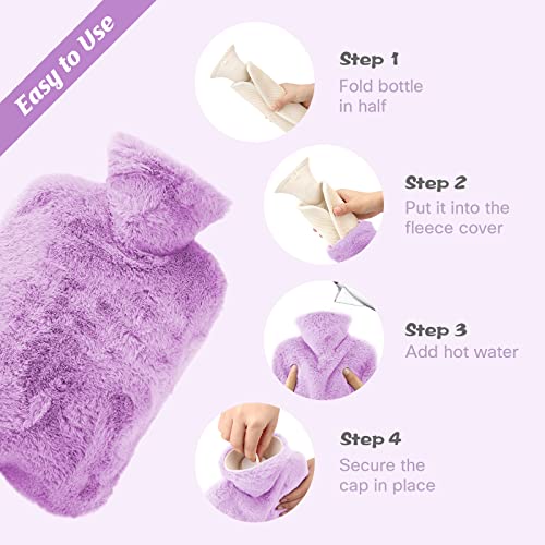 Cooyou Borsa Acqua Calda Peluche,2L PVC Borsa Dell'acqua Calda per Alleviare il Dolore, Boule Acqua Calda in Gomma Ottimo Regalo per Bambini, Donne e Anziani, Viola