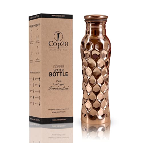 Cop29 - Borraccia fatta a mano in rame puro, in rame ayurvedico, confezione regalo, 900 ml (nido d'ape lucido)
