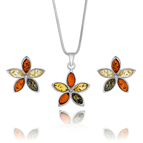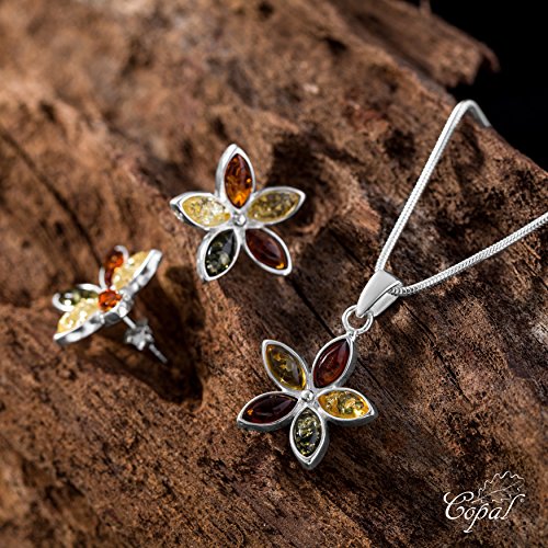 Copal Donne Ambra Parure Argento vero ciondolo Fiore multicolore lunghezza regolabile Incartamento di regalo Regali per la mamma