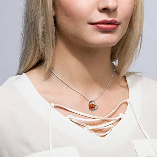 Copal Donne Ambra Parure Argento sterling 925 Ciondolo a cuore in ambra marrone lunghezza regolabile Confezione ecologica Regali per i migliori amici