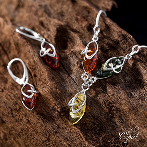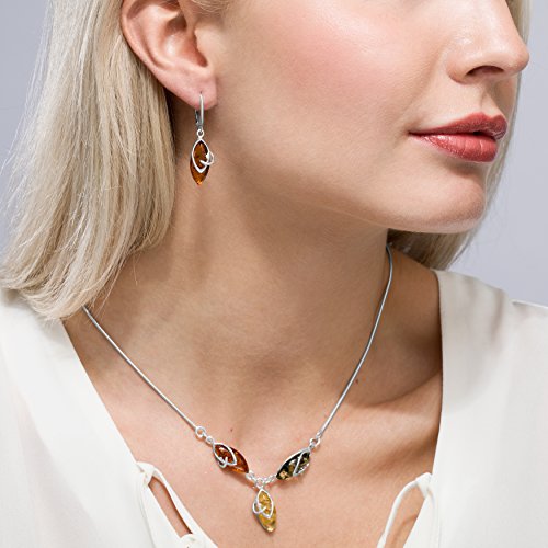 Copal Donne Ambra Parure Argento sterling 925 ciondolo 3 pietre collana a Y multicolore lunghezza regolabile Packaging sostenibile Bei regali per le donne