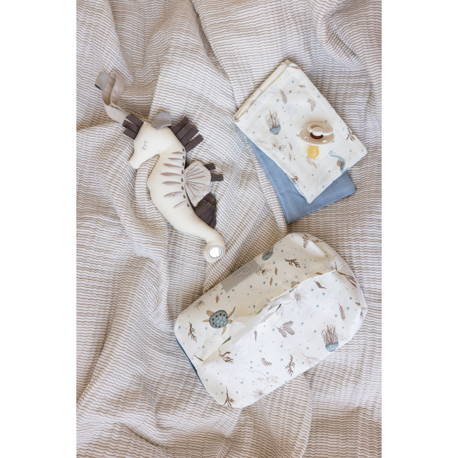Dettagli del prodotto: Morbide flanelle di mussola in confezione da 4 pz. Con 2 x 2 stampe Cam Cam Copenhagen Materiale e cura: 100% cotone biologico Certificato GOTS: EKTO 4401 Lavabile fino a 40°C Asciugare con centrifuga a calore medio Utilizzare un detergente delicato Dimensioni e peso: Dimensioni: 30 x 30 cm Incluso nella consegna: Cam Cam Copenhagen Mussola di flanella 4-pack Mix Sea Garden