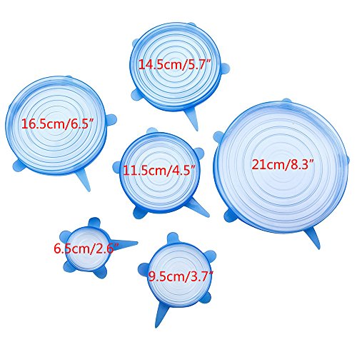 Multi-size per Multiuso: Totalmente 6 pezzi per set: 2.6 ", 3.7", 4.5 ", 5.7", 6.5 "e 8.3". Sono ideali per riporre gli avanzi, prendere piatti, bevande non finite o qualsiasi frutto e verdura avanzato.