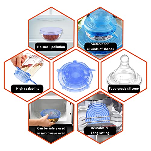Mantenere il cibo fresco - Questi coperchi elasticizzati in silicone creeranno un sigillo ermetico quando vengono posti sopra un contenitore, senza lasciare che l'aria penetri all'interno, mantenendo il cibo, la frutta e la verdura freschi più a lungo e lontano dalle mosche.