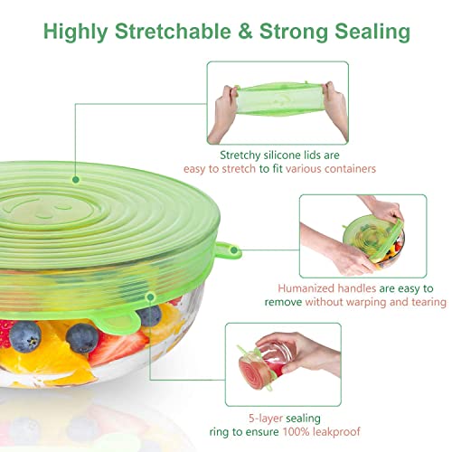 Uso ampio: i nostri coperchi in silicone sono durevoli e non si strappano o si deformano. Facile da usare e riutilizzabile, proteggere meglio l'ambiente rispetto alla pellicola di plastica.