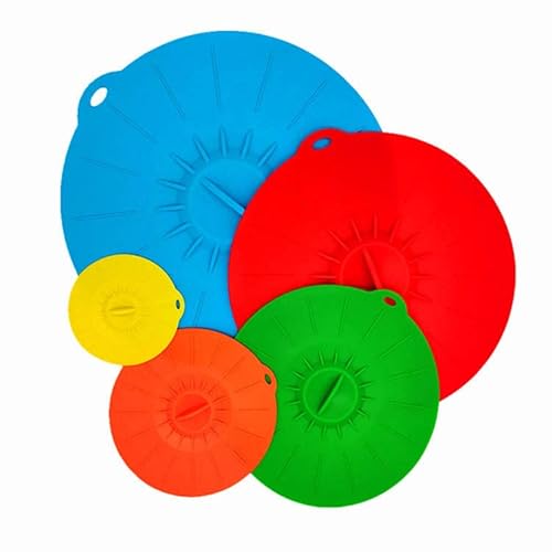 Set di coperchi in silicone, riutilizzabili, in silicone, universali, antipolvere, resistenti al calore, per ciotole, pentole, pentole, piatti, tazze, 5 misure (30/25/20/15/10 cm)