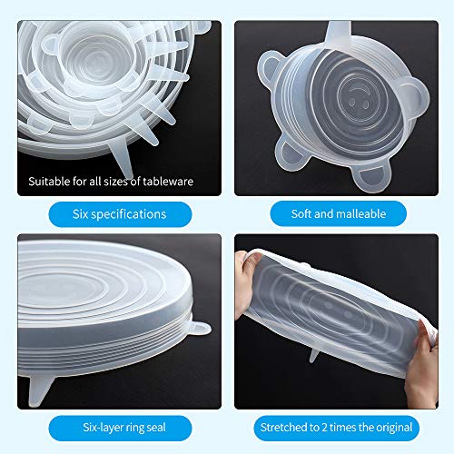 5. [Multifunzione e multi-formato] 2 × 6 pezzi per set di forma rotonda: 19,5 / 15,5 / 13,5 / 11 / 9,5 / 6 cm. Ogni set di 2 × 6 pezzi quadrati: 20 / 15,5 / 13,5 / 11 / 9,5 / 6 cm. Il contenitore può essere di varie forme e dimensioni tra cui: insalatiera, vetro, vetro, cibo, vetro, tazza, coperchio per succhi, barattoli, pentole, anguria, ananas, melone o altra frutta e verdura.