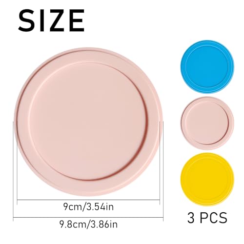 Contenuto del prodotto: riceverete 3 coperchi in silicone in diversi colori (blu, rosa, giallo). Il coperchio della tazza ha un diametro esterno di 10 cm e un diametro interno di 8 cm. È adatto per tazze da yogurt con un diametro di 9 cm.
