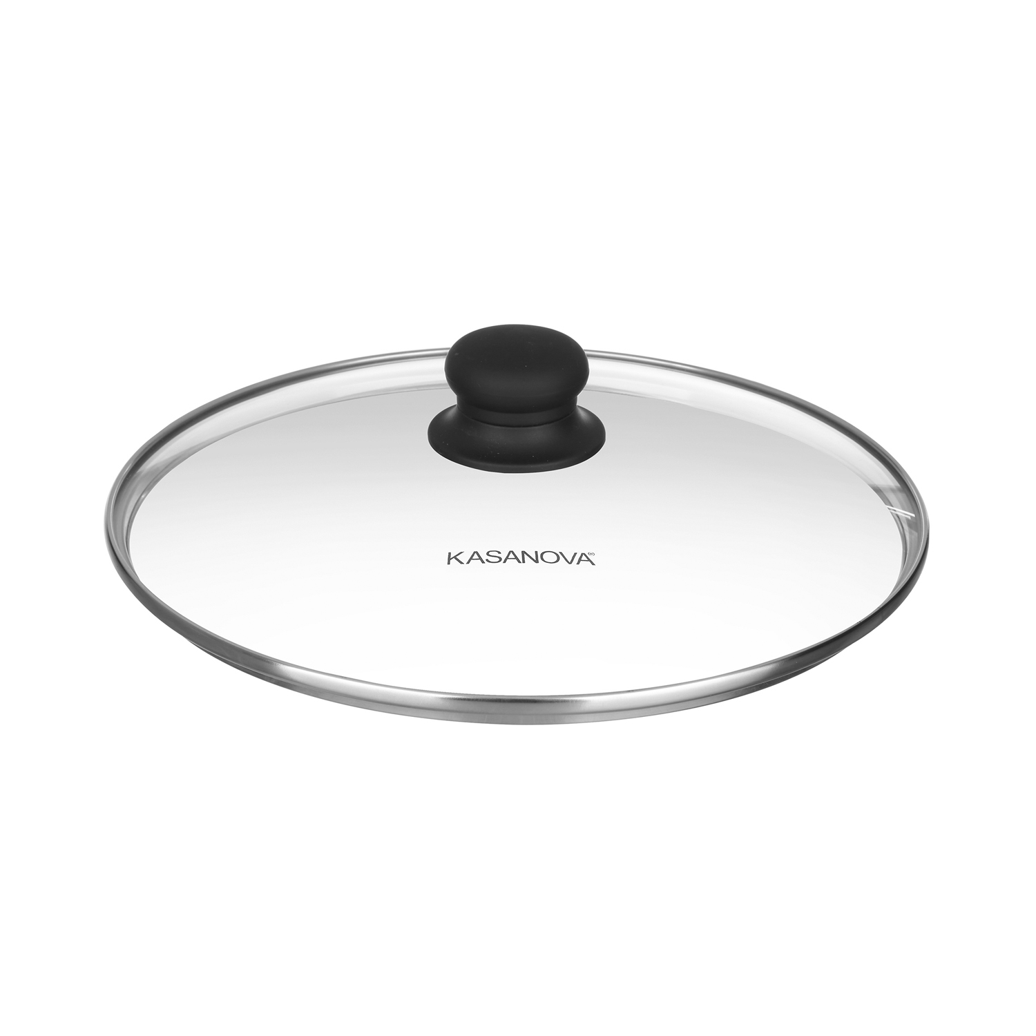 Coperchio KASANOVA possiede caratteristiche uniche che lo rendono un accessorio utile per ogni tipo di cottura. Il vetro trasparente permette di seguire la cottura degli alimenti senza la necessità di sollevarlo abbassando la temperatura e interrompendo il mantenimento del calore. Il foro permette la fuoriuscita del vapore in modo sicuro ed evitando l'appannamento della superficie. Il manico soft touch consente una presa salda e sicura. Il design del coperchio si sposa con qualsiasi tipo di casseruola o tegame dello stesso diametro.
