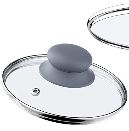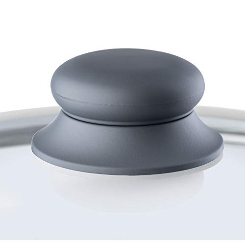 Coperchio in vetro KADAX con manico in silicone, coperchio resistente al calore per pentole ⌀14-30 cm, coperchio con foro per il vapore, coperchio universale in diverse dimensioni (20 cm, grigio)