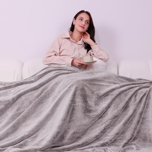 【Decorazione di Lusso per la Casa】 La coperta in finta pelliccia di coniglio con una texture ricca e un colore brillante, ha un aspetto lussuoso, può essere utilizzata come coperta divano, coperta per l'ufficio, coperta da viaggio, coperte letto, può creare un'atmosfera elegante e alla moda per la tua stanza, è la scelta perfetta per la decorazione della tua casa.