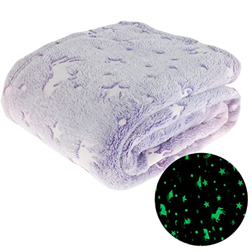 Your's Bath Coperta in Pile per Bambini Luminosa 150 x 180 cm, Coperta bambino che si illumina, Coperta Plaid in pile Luminosa, Coperta Che Si Illumina al Buio per Stagioni(Viola con motivo unicorno)