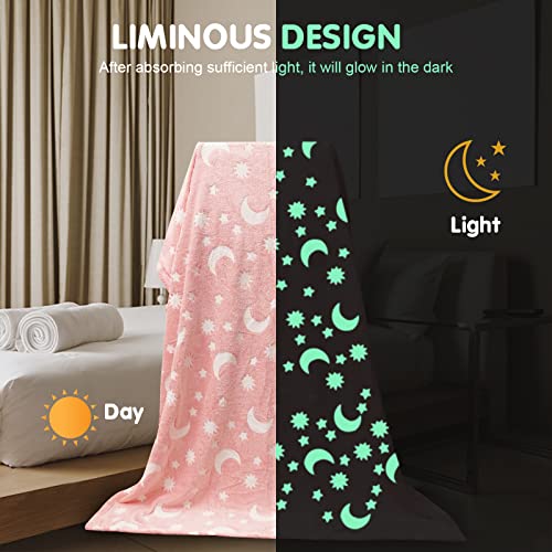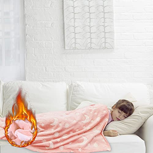 Coperta in Pile per Bambini Morbida Coperta Termica Accogliente Che brilla nel Buio Coperta per Tutte Le Stagioni Stelle Coperta ponderata per Bambini 120x150cm Pink
