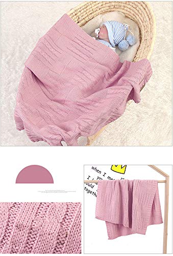 Coperta Bimbo in Maglia per Bambino, Surwin Baby Copertina Neonato Multiuso in Cotone Biologico per Carrozzina Culla Lettino Passeggino (80x100cm,Rosa)