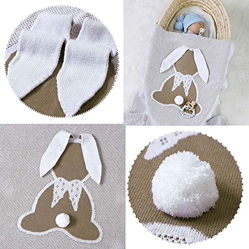 Coperta Bimbo in Maglia per Bambino, Surwin Stampa orecchie di coniglio Baby Copertina Neonato Multiuso in Cotone Biologico per Carrozzina Culla Lettino Passeggino (Cachi,100x80cm)