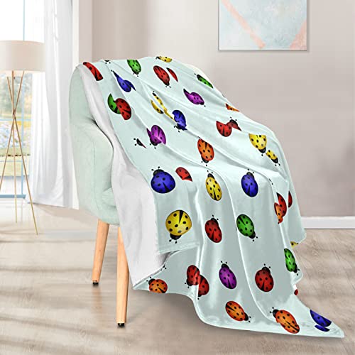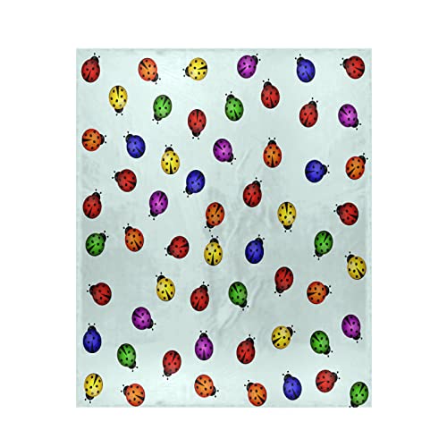 Coperta a tema coccinelle colorate, super morbida, calda, 150 x 150 cm, comoda coperta per divano e sedie da viaggio