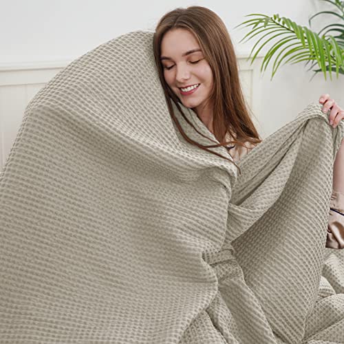 PHF Coperta in 100% cotone, 150 x 200 cm, morbida coperta in pique a nido d'ape, leggera, coperta per divano, 150 x 200 cm, colore cachi