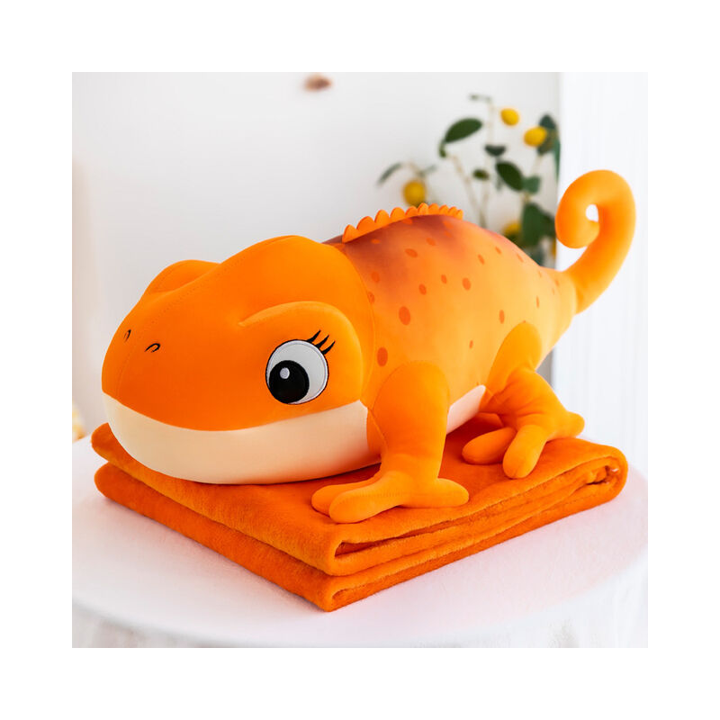 Coperta per cuscino 2 In 1 roba strano peluche che abbraccia cuscini giocattolo morbido camaleonte coperta simpatici animali domestici cuscino Baby Kid pisolino coperta,2 in 1 Orange,100x160cm