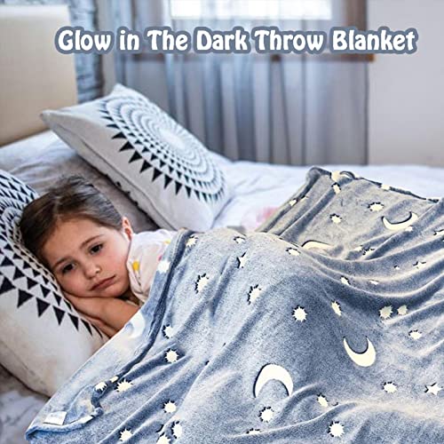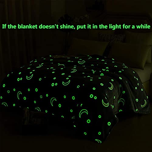 Coperta in flanella con luce al buio, coperta in pile calda e accogliente con stella luminosa e luna, coperta in peluche pensosa per bambini adatta a ragazzi, ragazze