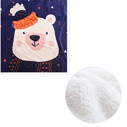 Coperta Flanella per Lettino Bimbo per Bambini Reversibile Caldo Coperte Neonato per Bambini Singolo Asilo Grande e Morbide Tenere Caldo Carino Baby copertina100x140cm (Orso Bianco Blu)