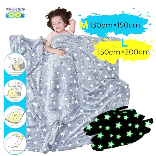 [ Coperta Glow in the Dark? Regalo Natale per Bambino! SI! ] - Stai rompendo la testa per trovare un regalo unico per il tuo piccolo? Regalatelo a voi un bel regalo che durerà per anni.La nostra coperta in pile che si illumina puo'sorprendere i bambini in occasione di compleanni,Natale,Befana,Halloween o altre festa.La coperta che brilla al buio può stimolare le idee interessanti dei bambini e far loro godere del magico bagliore notturno.